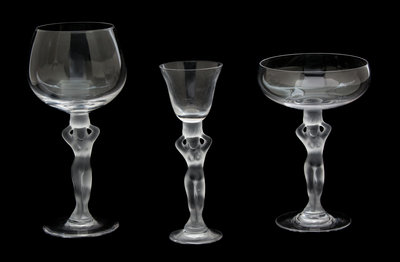 comprising six cordials, six goblets and six champagnes; 18 items total.