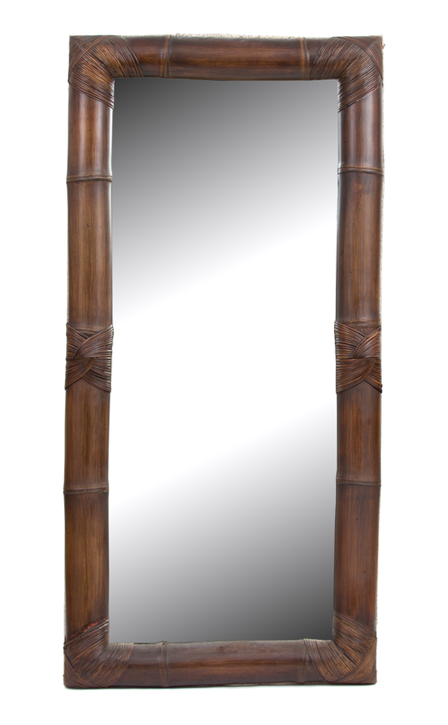 A Full Length Rattan Wrapped Bamboo Framed Mirror