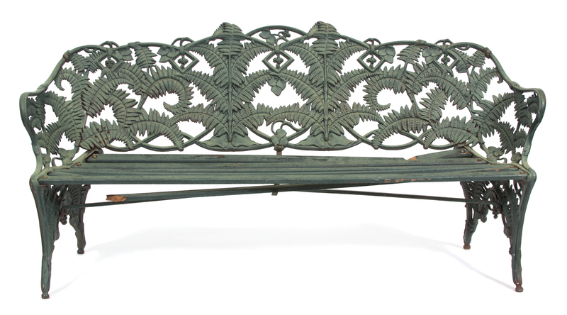 A Painted Cast Iron Fern Pattern Bench
