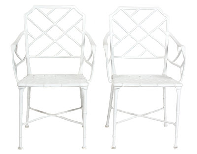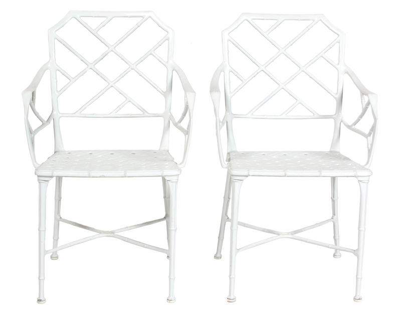 Six Chinese Chippendale Style Painted Metal Armchairs