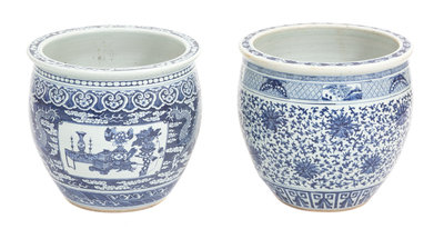 A Pair of Chinese Blue and White Porcelain Jardinieres