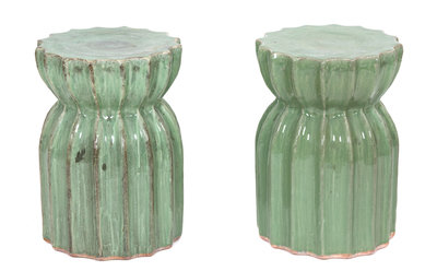 A Pair of Glazed Ceramic Fluted-Form Garden Seats