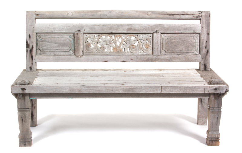 A South East Asian Carved Weathered Teak Bench