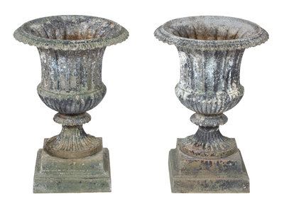 A Pair of Patinated Metal Campana Form Urns