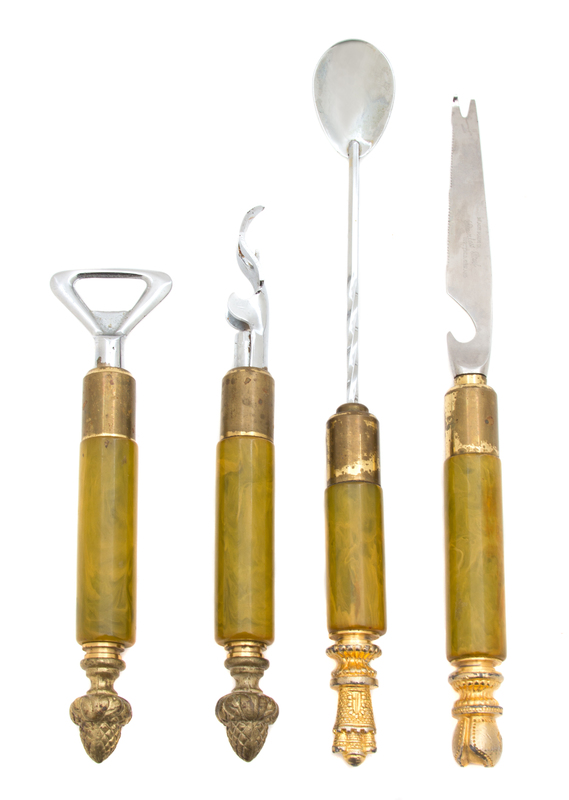 A Set of Four English Onyx Handled Bar Tools