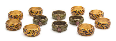Two Sets of Jay Strongwater Enameled and Jeweled Napkin Rings