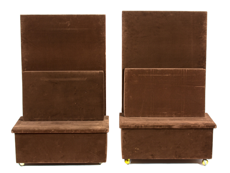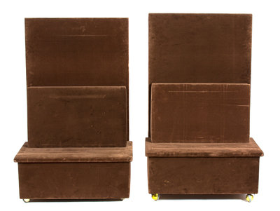 A Pair of Brown Velvet Covered Gallery Easels