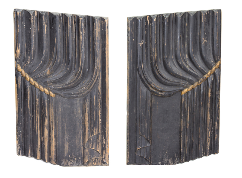 A Pair of English Painted and Parcel Gilt Ebonized Shaped Door Panels