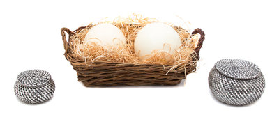 comprising a wicker basket containing two ostrich eggs, and two silveredcovered baskets bowls.