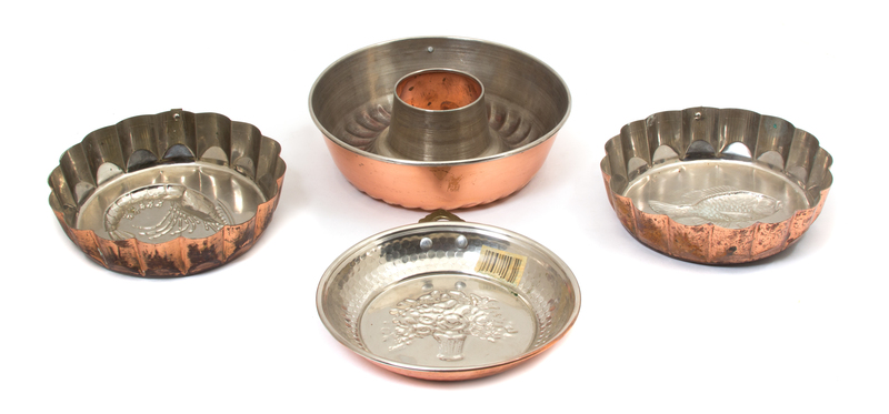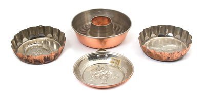 Four Copper and Brass Mousse and Cake Molds