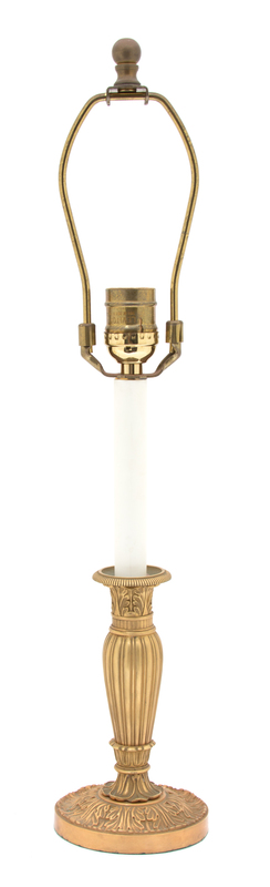 A French Empire Style Gilt Bronze Candlestick-Form Lamp