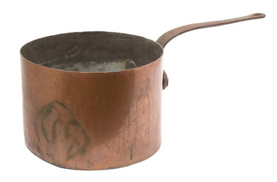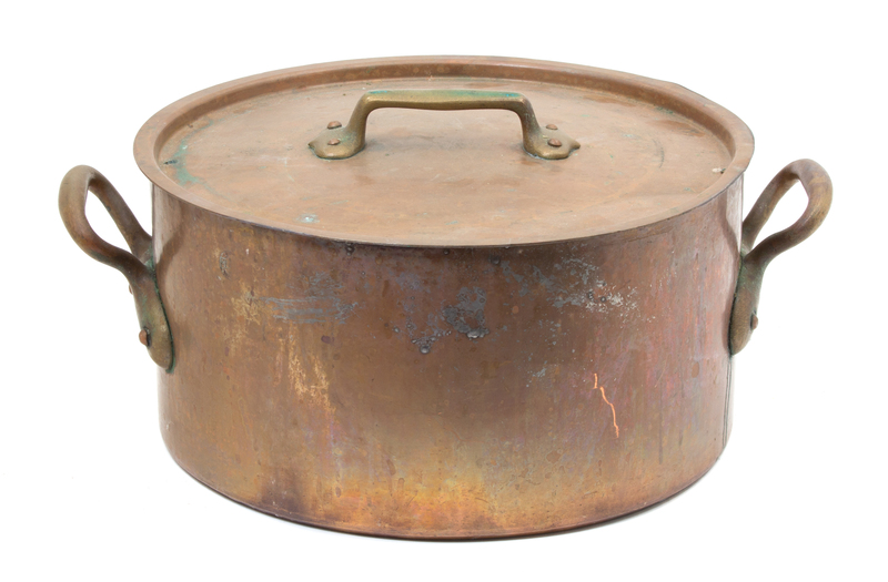 comprising one double-brass handled pot with lid and an iron handled pot.