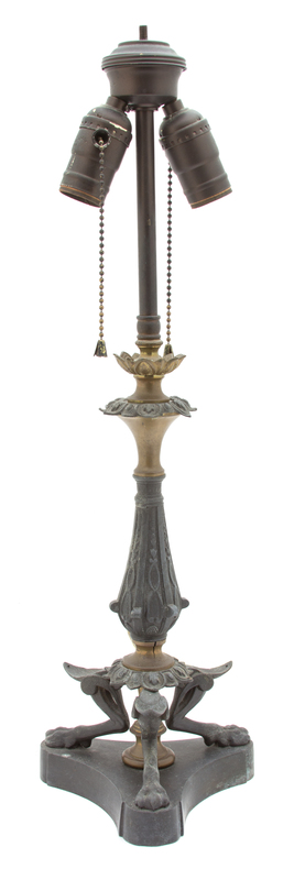 A Neoclassical Style Patinated Metal Two-Light Table Lamp