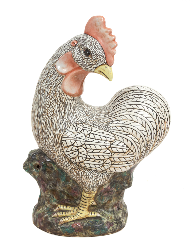 A Chinese Export Polychrome Ceramic Chicken