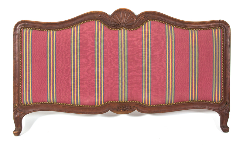 A Louis XV Style Carved Walnut and Upholstered Headboard and Footboard
