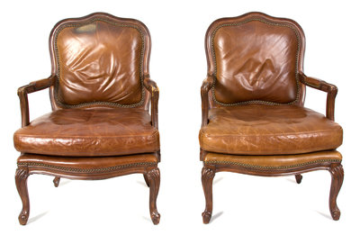 A Pair of George III Style Carved Mahogany Open Armchair