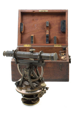 with a fitted wood case, the theodolite apparently unmarked.