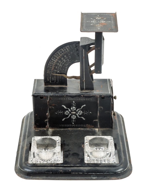 An American Painted Metal Postage Scale Standish