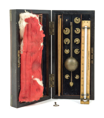 comprising a hydrometer, ruler and a thermometer in a fitted case.