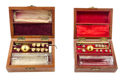 each having a fitted case with thermometer and glass beaker.