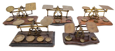 A Group of Five Brass Postal Scales