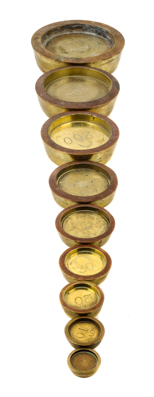 A Set of Nine Brass Sovereign Weights