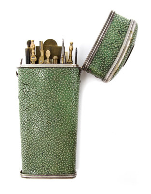 A Dutch Shagreen and Silver-Mounted Cased Drawing Insrument Set