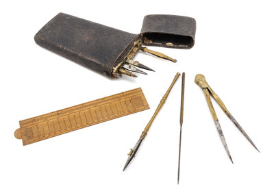 An English Ray-Skin Cased Nine-Piece Drawing Instrument Set