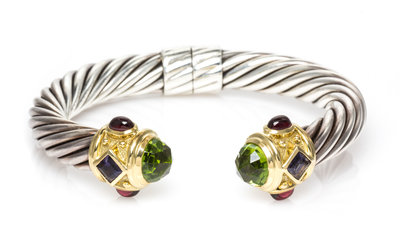 A Sterling Silver, 14 Karat Yellow Gold, Peridot, Iolite and Garnet 'Renaissance' Bracelet, David Yurman,