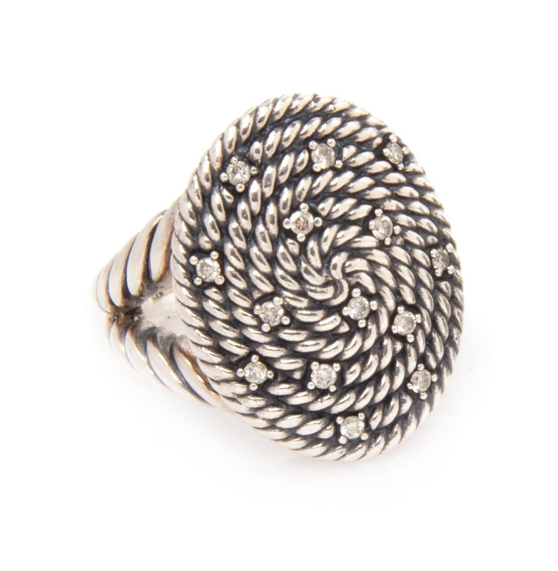 A Sterling Silver and Diamond 'Cable Coil' Ring, David Yurman,
