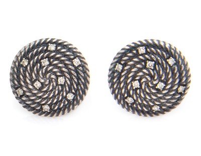 A Pair of Sterling Silver and Diamond 'Cable Coil' Earclips, David Yurman,