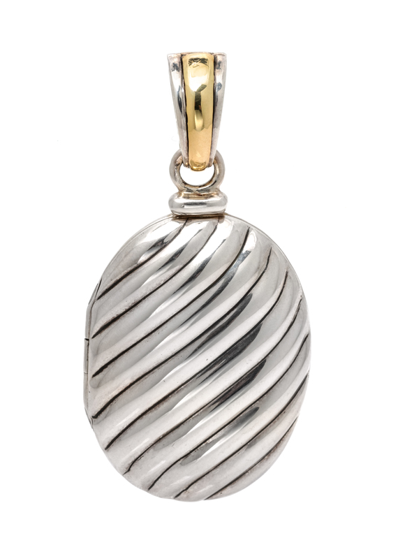A Sterling Silver and 18 Karat Yellow Gold Oval 'Cable' Locket, David Yurman,