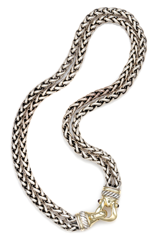 A Sterling Silver, 14 Karat Yellow Gold and Garnet 'Double Wheat' Chain Necklace, David Yurman,