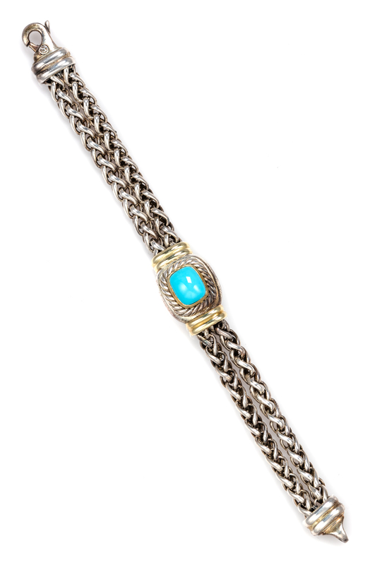A Sterling Silver, 14 Karat Yellow Gold and Turquoise 'Albion' Bracelet, David Yurman,