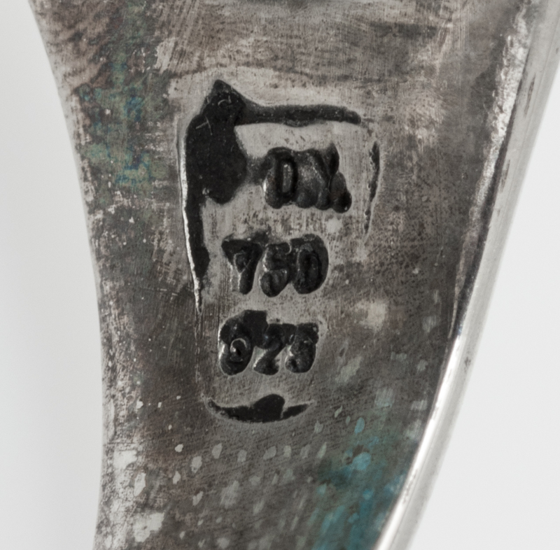 containing one cushion shape cabochon cut turquoise measuring approximately 19.80 x 19.90 mm.Stamp: (DY maker's mark) 925 750.