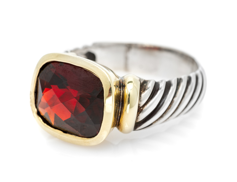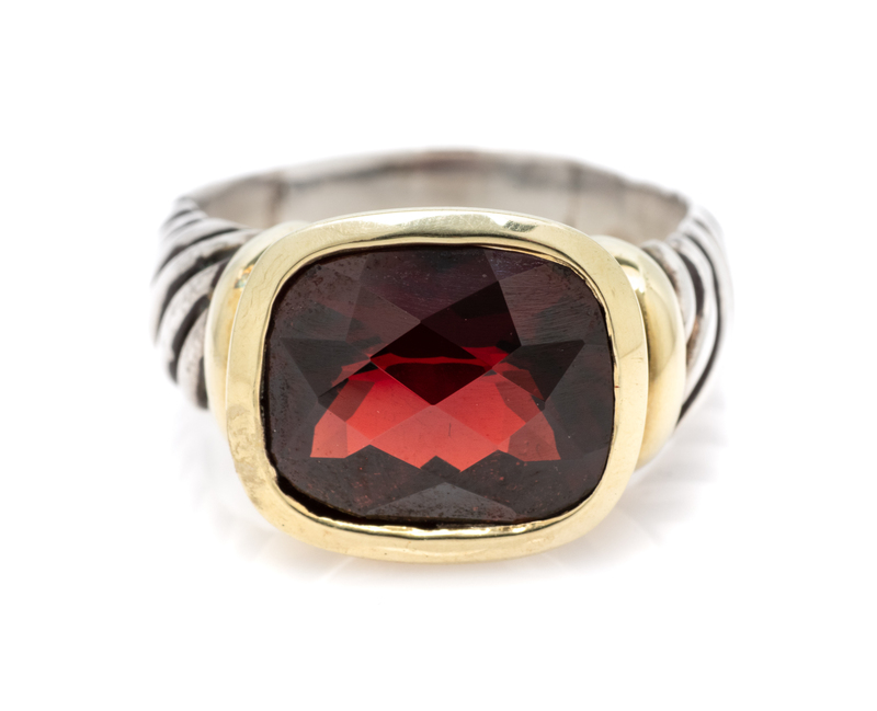 A Sterling Silver, 14 Karat Yellow Gold and Garnet 'Noblesse' Ring, David Yurman,