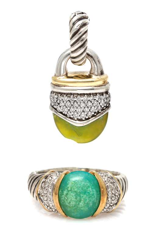 A Sterling Silver, 18 Karat Yellow Gold, Peruvian Opal and Diamond 'Capri' Demi-Parure, David Yurman,
