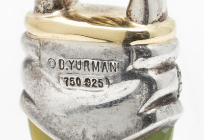 consisting of a ring containing one round cabochon cut Peruvian opal and numerous round brilliant cut diamonds together with a matching pendant containing one flat cabochon cut Peruvian opal and numerous round brilliant cut diamonds.Stamp: D. YURMAN 750 925.