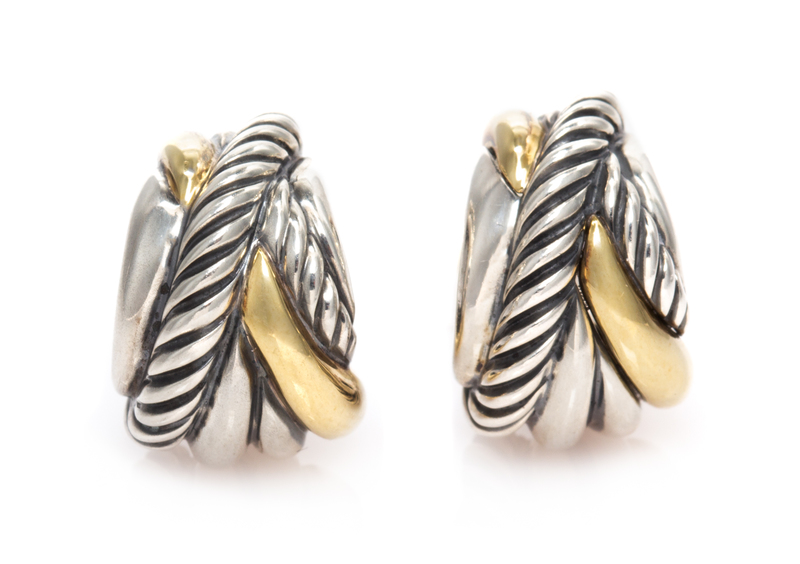 A Pair of Sterling Silver and 18 Karat Yellow Gold 'Crossover' Earclips, David Yurman,