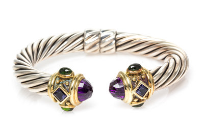 A Sterling Silver, 14 Karat Yellow Gold, Amethyst, Iolite and Green Tourmaline 'Renaissance' Bracelet, David Yurman,