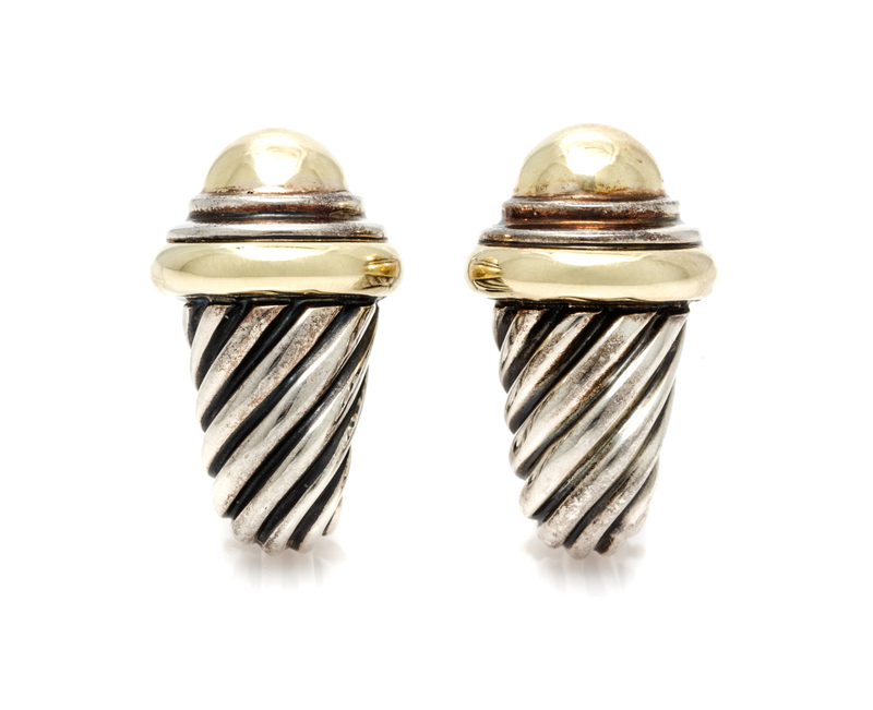 A Pair of Sterling Silver and 14 Karat Yellow Gold 'Thoroughbred' Earclips, David Yurman,