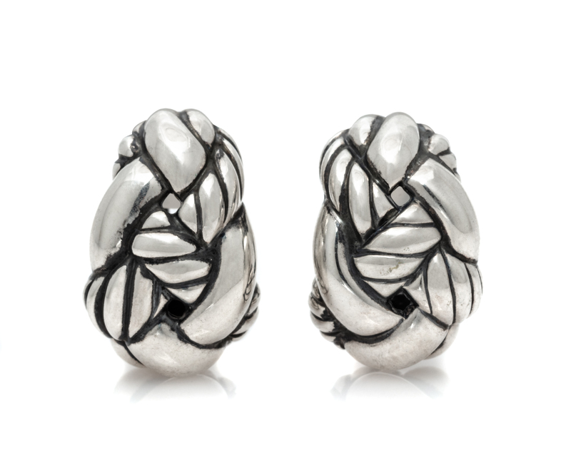 A Pair of Sterling Silver 'Woven Cable' Earclips, David Yurman,