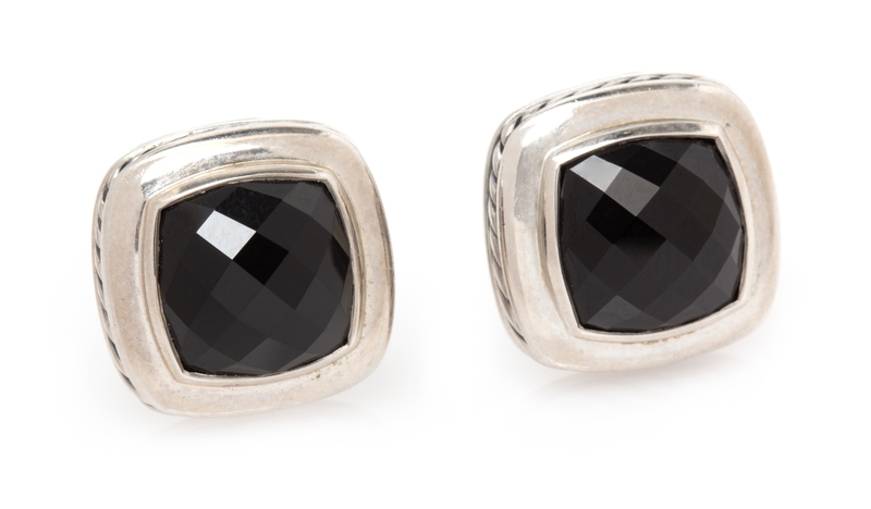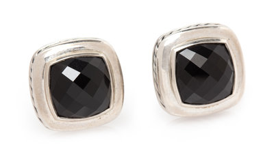 A Pair of Sterling Silver and Onyx 'Albion' Earclips, David Yurman,