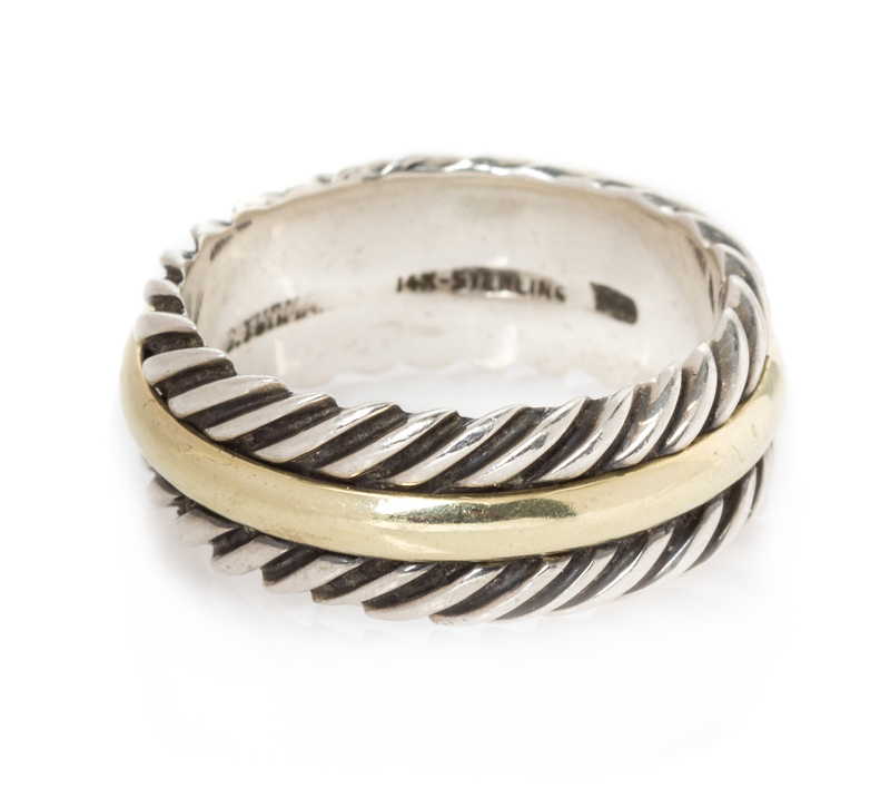 A Sterling Silver and 14 Karat Yellow Gold 'Cable' Ring, David Yurman,
