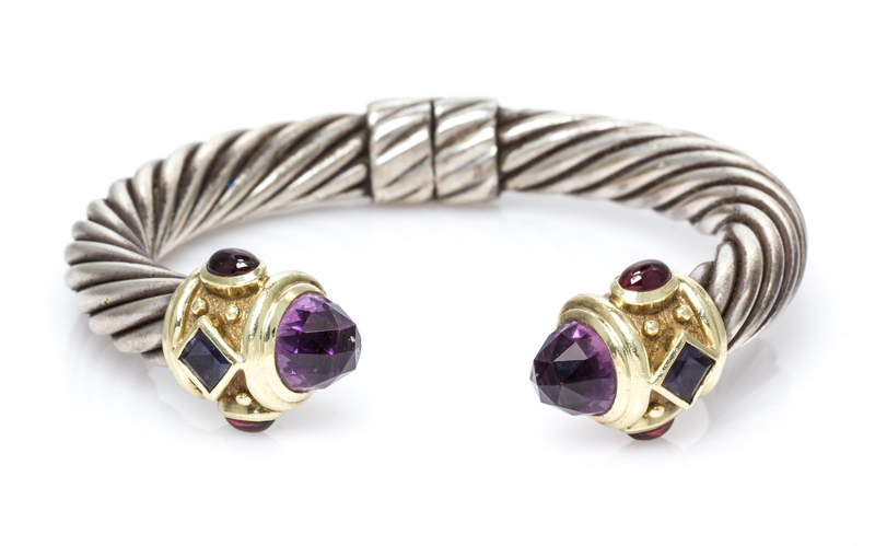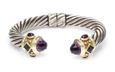 A Sterling Silver, 14 Karat Yellow Gold, Amethyst, Iolite and Garnet 'Renaissance' Bracelet, David Yurman,