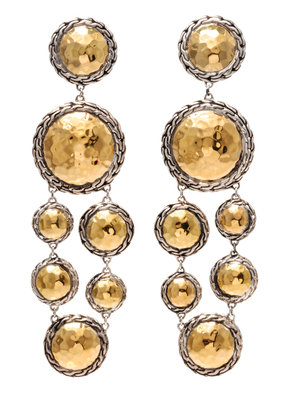 A Pair of Sterling Silver and 22 Karat Yellow Gold 'Palu' Chandelier Earclips, John Hardy,