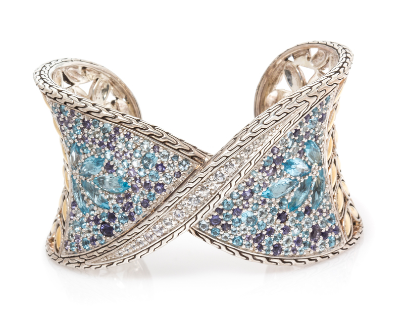 A Sterling Silver, 18 Karat Yellow Gold, Blue Topaz, Iolite and White Sapphire 'Batu Kawung' Sunset Bracelet, John Hardy,