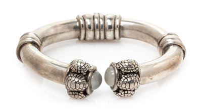 A Sterling Silver and Moonstone 'Turtle' Bangle Bracelet, Kieselstein-Cord, Circa 2000,