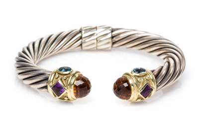 A Sterling Silver, 18 Karat Yellow Gold, Citrine, Tourmaline and Blue Topaz 'Renaissance' Bracelet, David Yurman,