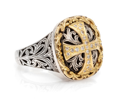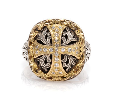 A Sterling Silver and 18 Karat Yellow Gold 'Diamond Classics' Cross Ring, Konstantino,